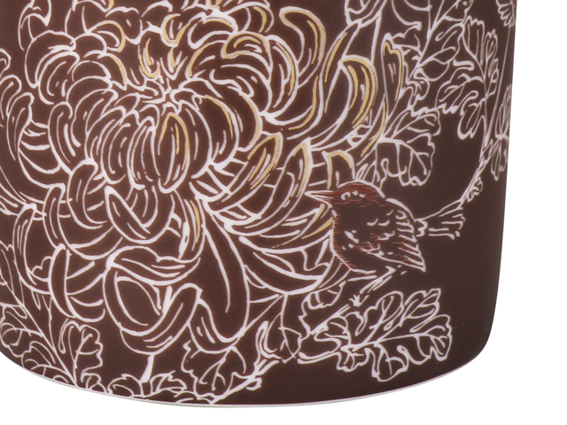 着物ならではの描写や空間を真白な磁器のキャンバスに表現いたしました。