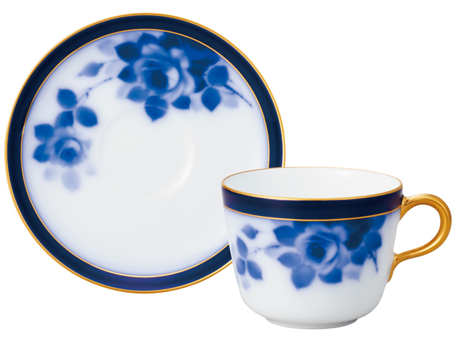 自然に青いバラの花を咲かせることは不可能だと言われていた時代、その奇跡をデザインしたのが大倉陶園の「ブルーローズ」です。