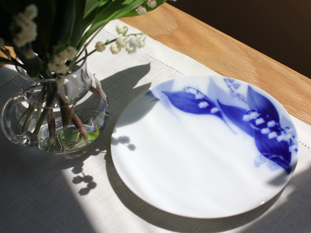 使う方のへの幸運の訪れを願い、すずらんの花を大倉陶園独自の技法”岡染め”で清らかに表現しました。
