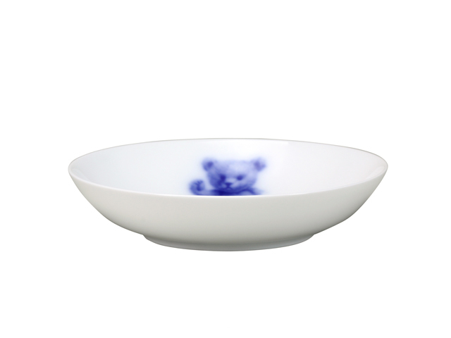世界中で愛されているテディベアの愛くるしさをそのまま白磁にうつした温もりのある絵柄です。岡染めブルーのグラデーションがふんわり優しい雰囲気を醸し出します。使いやすい小ぶりなサイズで、ご家族皆さまでお使いいただけます。