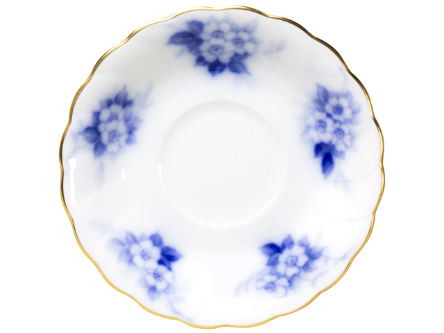 深いブルーの色彩は、大倉陶園独自の『岡染め』技法。 炎の芸術が創り出す神秘の色彩です。