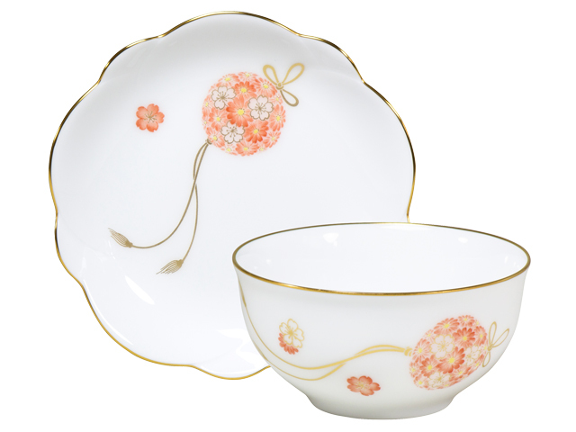 桜と菊で形作った花毬の可憐な色は、この真っ白な磁器だからこそ軽やかに映えます。