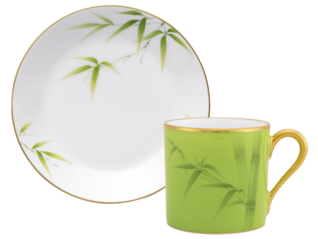 ソーサーには手の届く高さに伸びた竹の枝葉を描き、情景を目線の高さと重ね合わせました。